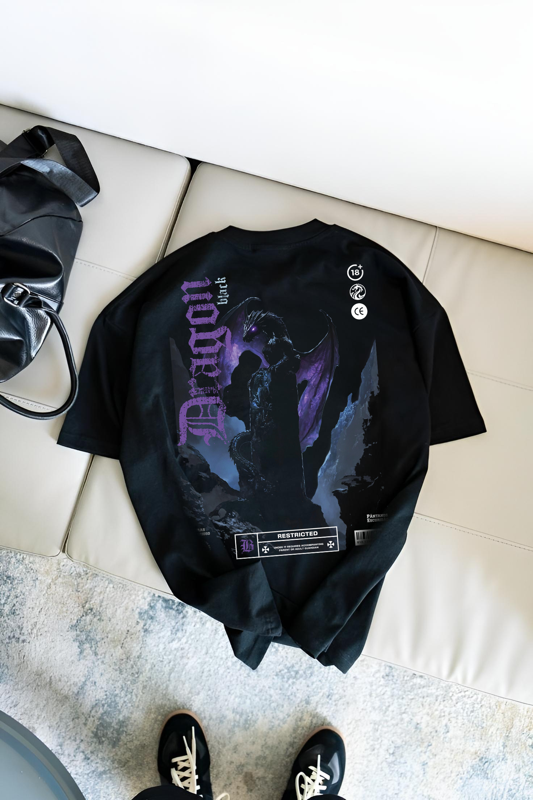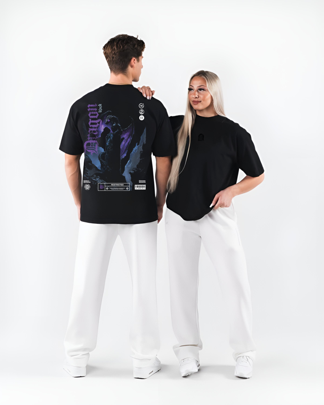 A Dragon Negro – Shadows Edition traz a força dos dragões para o seu estilo. Com uma arte exclusiva que mistura fantasia sombria e estética urbana, essa camiseta oversized é feita para quem carrega presença e intensidade em cada detalhe.